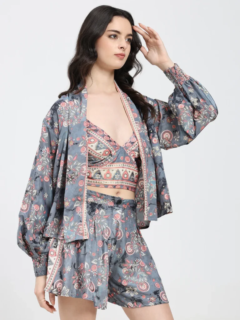 Grey Gardenia Shorts Coordinate Set (3 Piece)