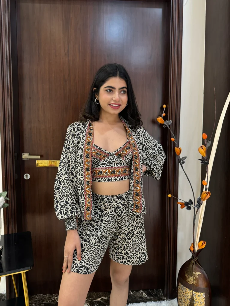 Grey Gardenia Shorts Coordinate Set (3 Piece)