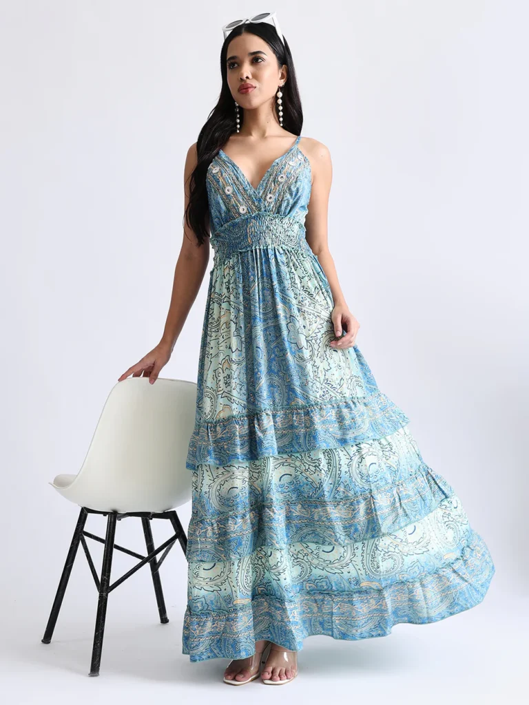 Turquoise Trails Boho printed Maxi Dress