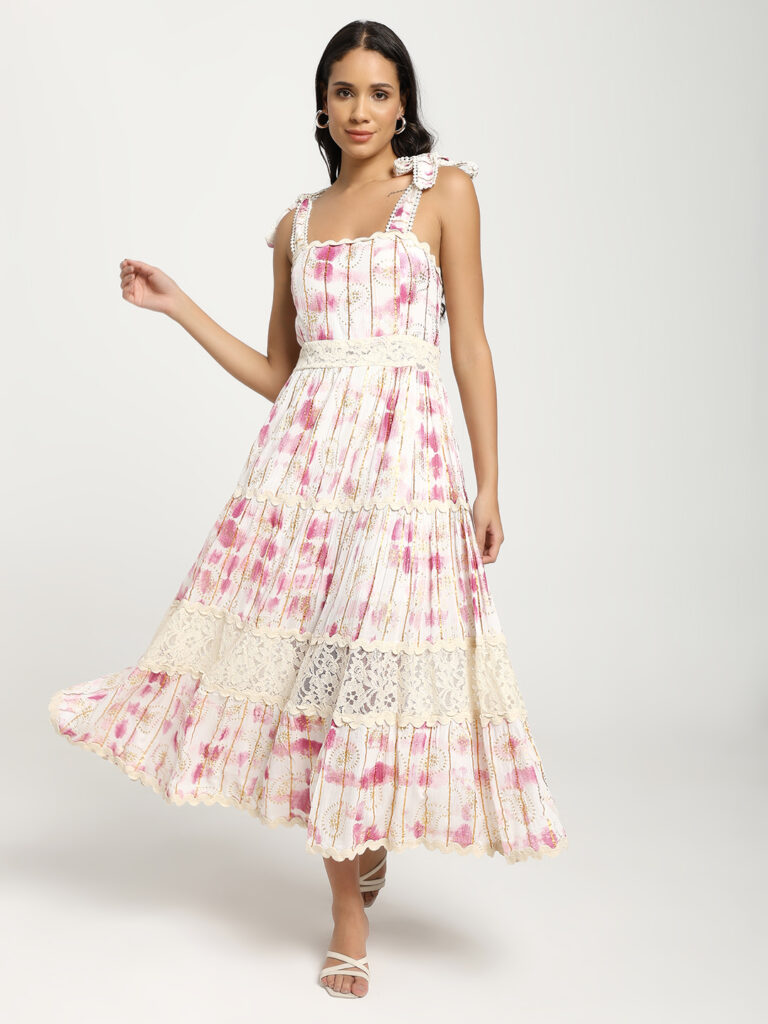 White and Pink Colour Maxi Dress