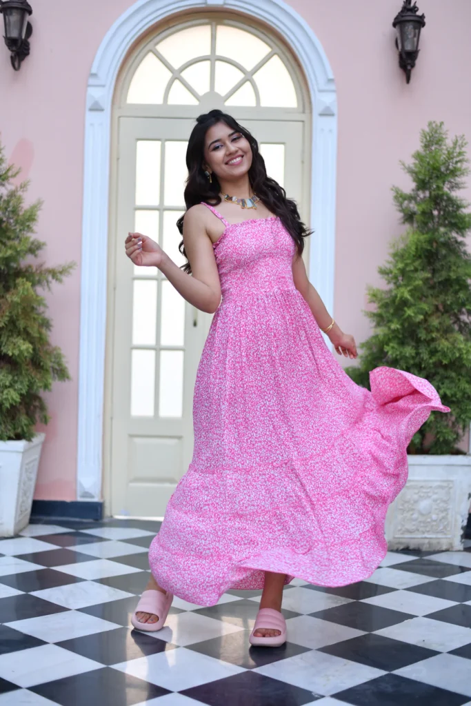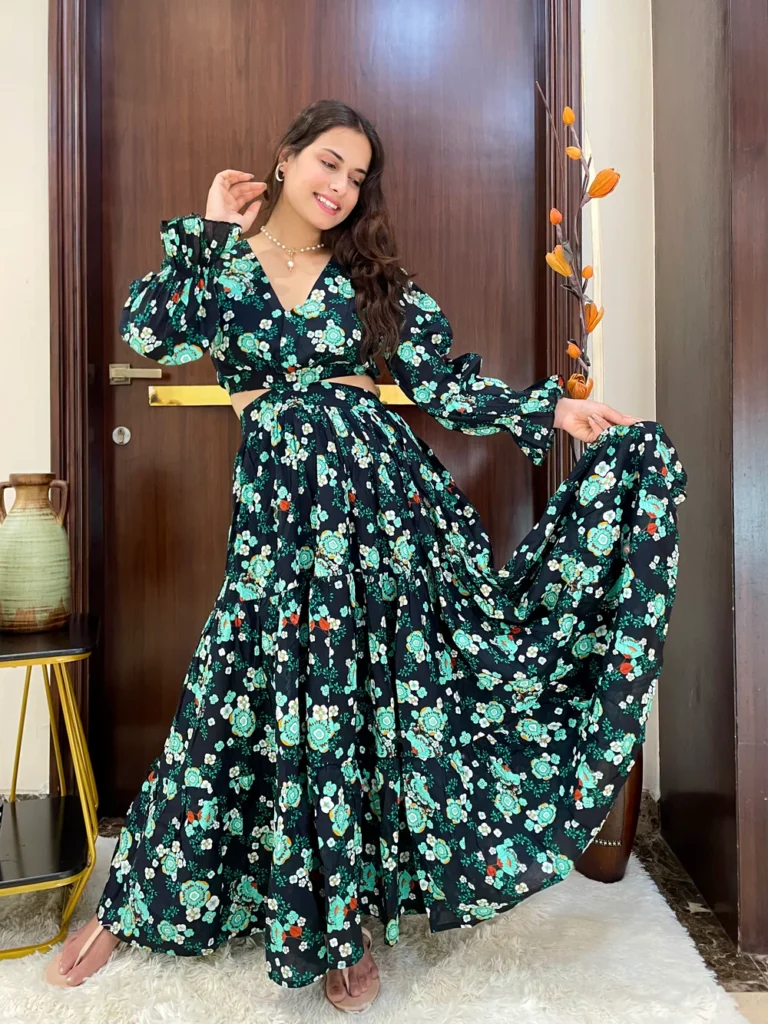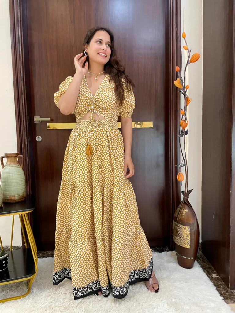 Tangerine Dream Puff Sleeves Cut Out Cotton Dress
