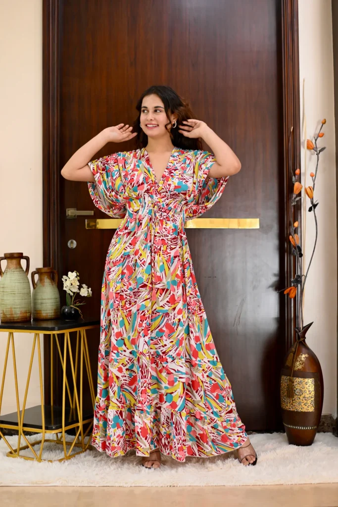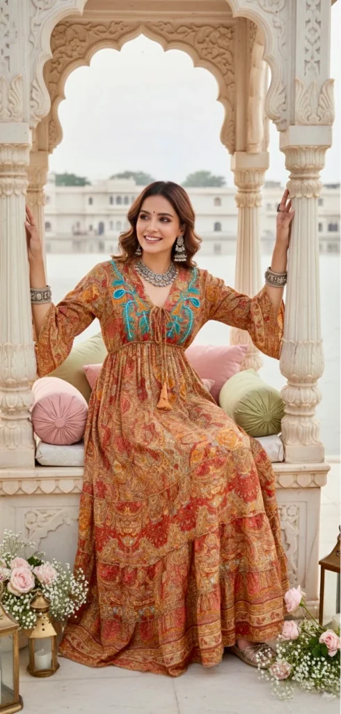 Rosy Elegance Boho Printed Maxi Dress