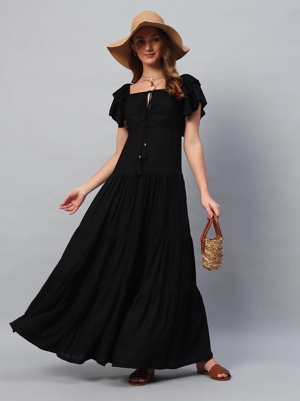 Black Cotton Maxi Dress
