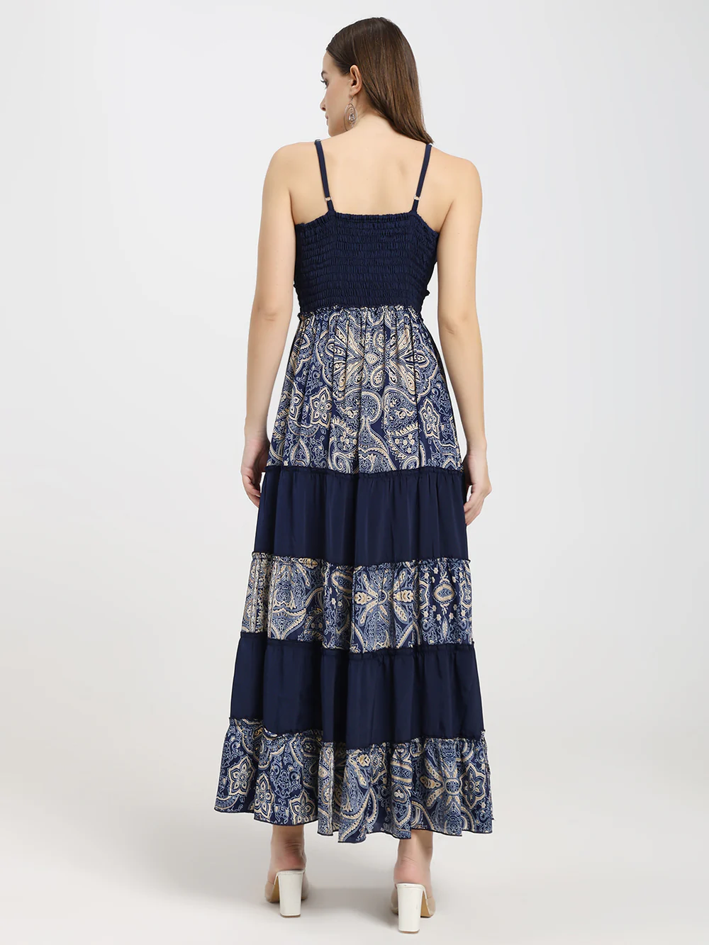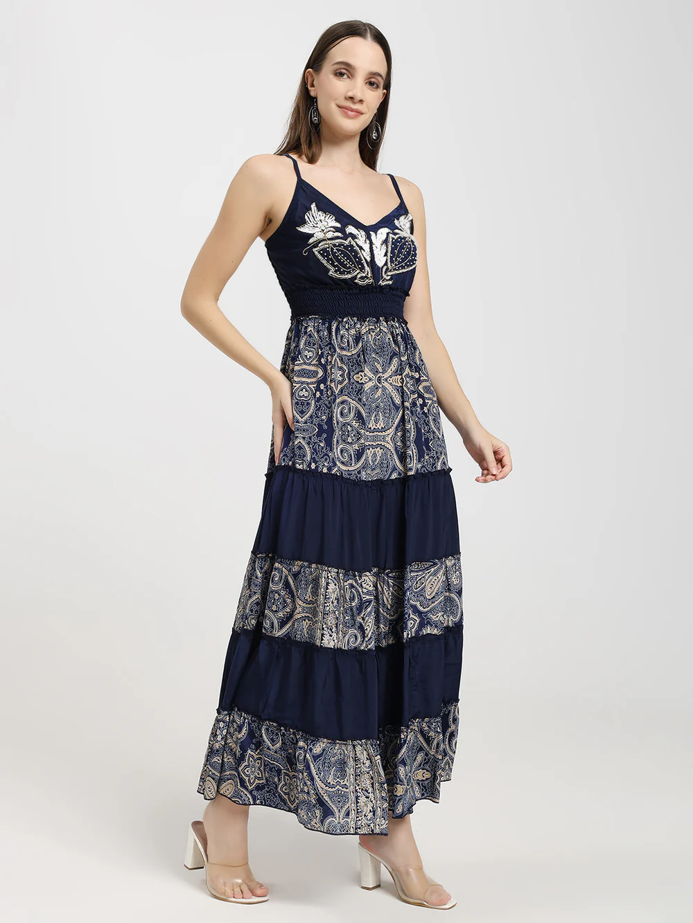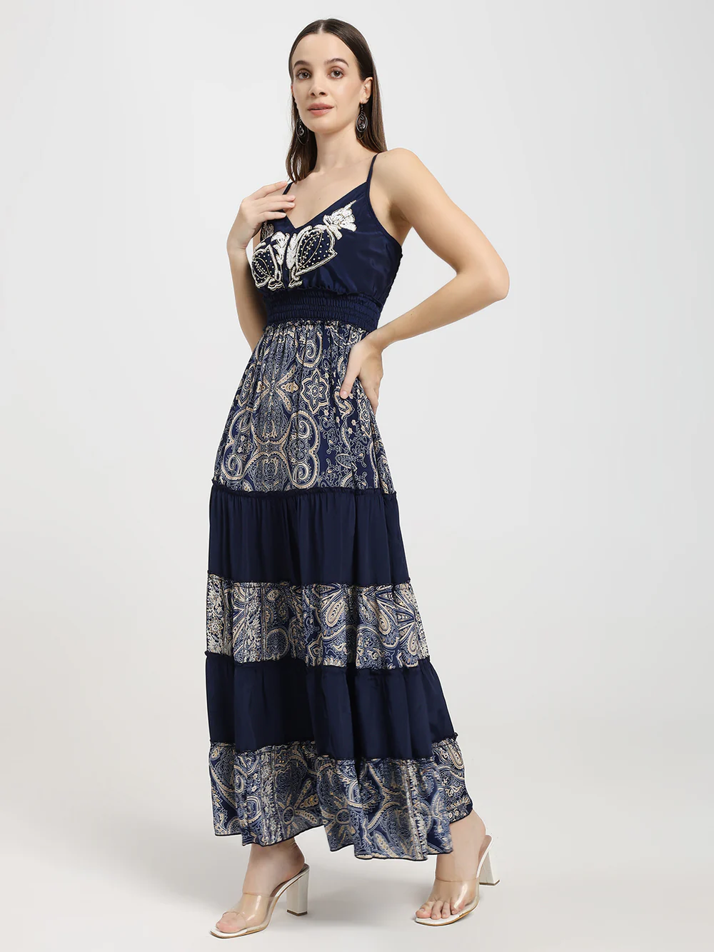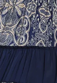 Blue Embroidery Printed Maxi Dress