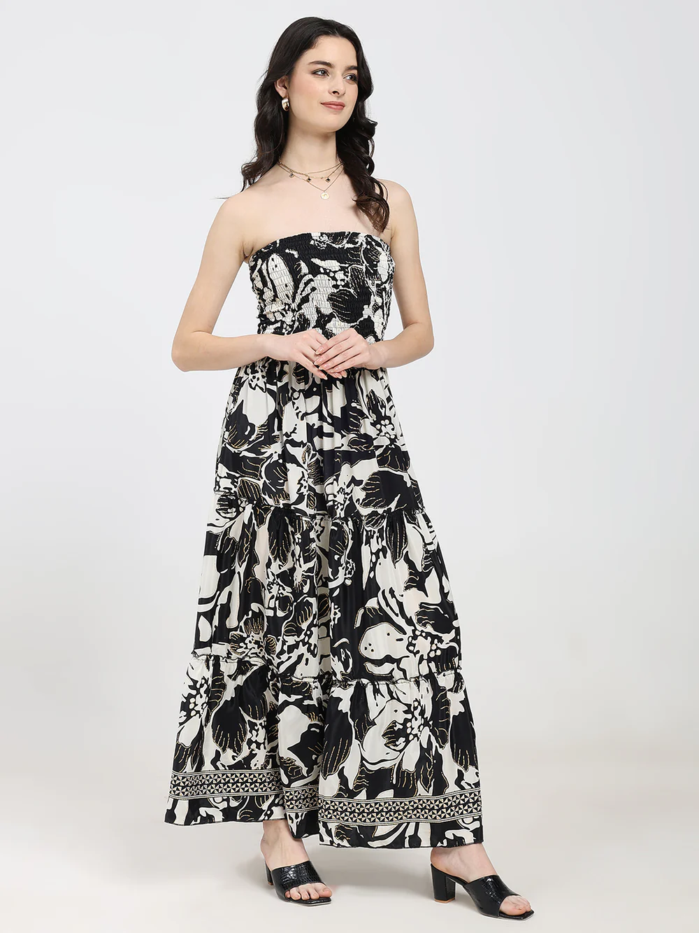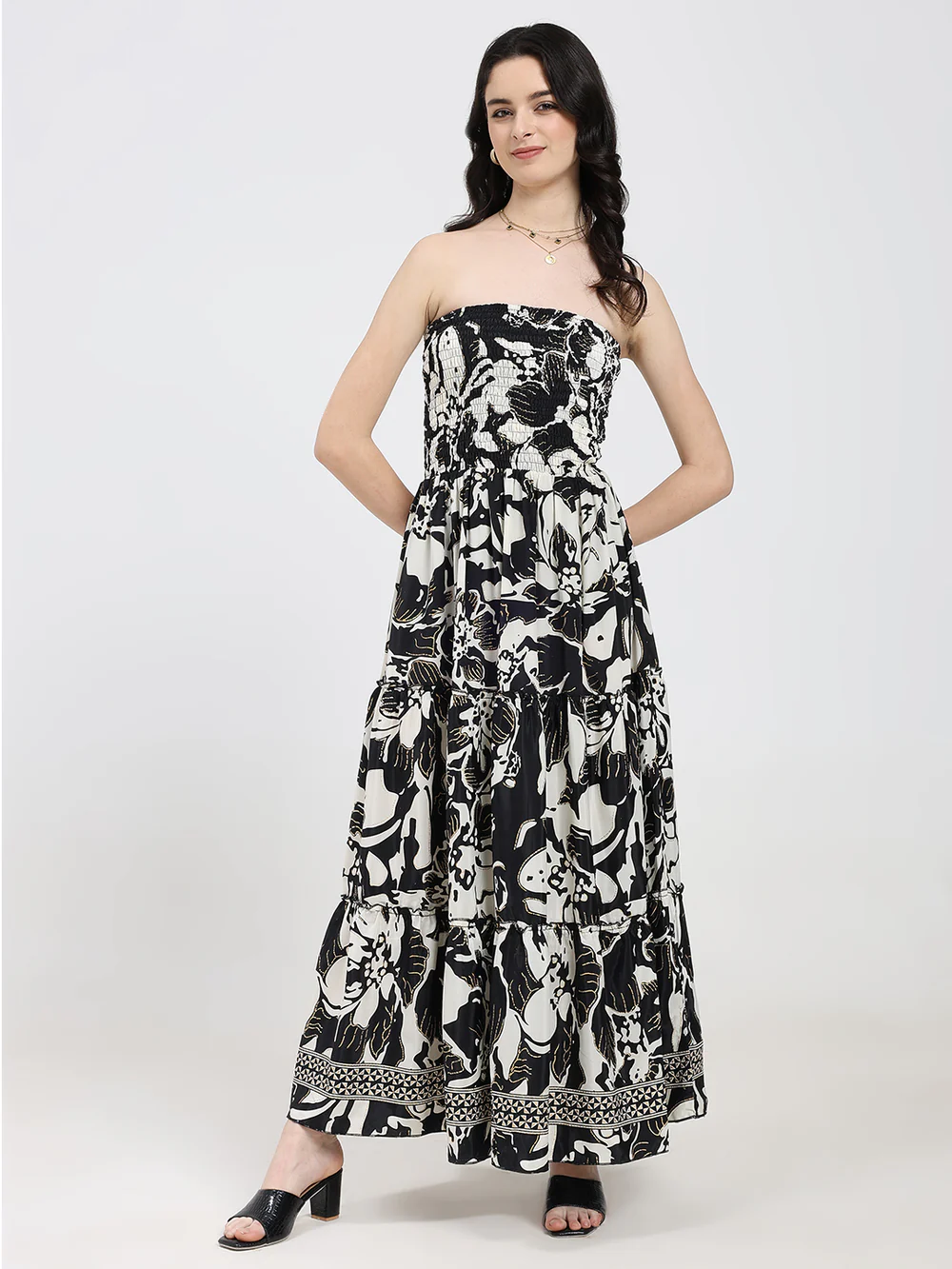 Boho White Shoulder Less Maxi Dress