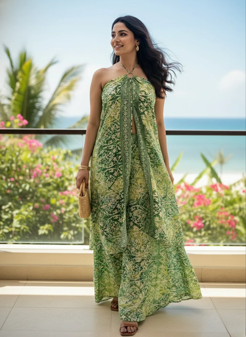 Green Backless Boho Printed Coordinate Set