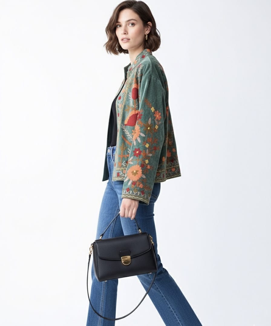 – Iron on low heat if needed, avoid direct heat on any embellishments