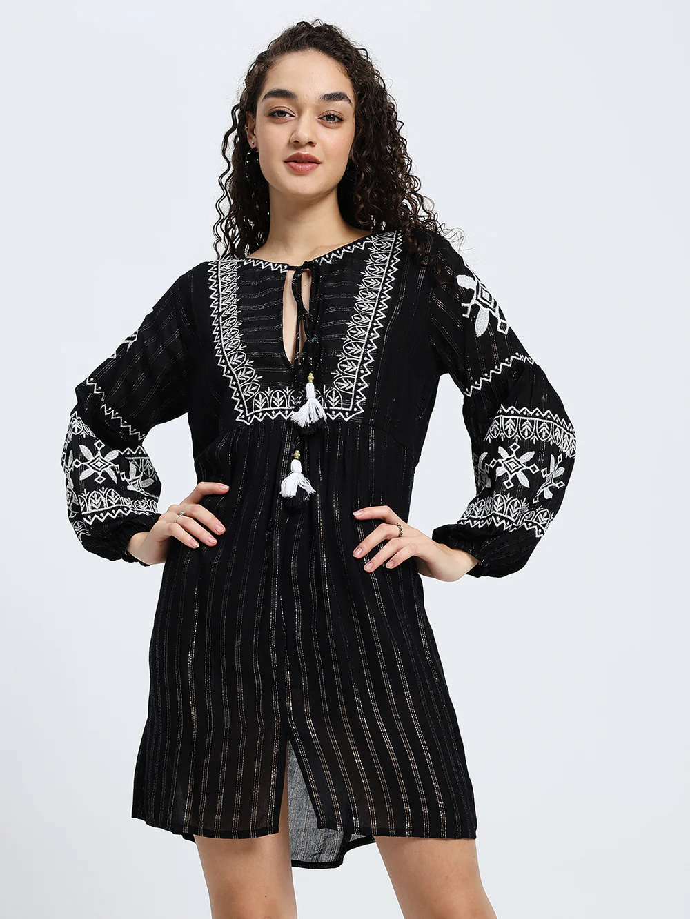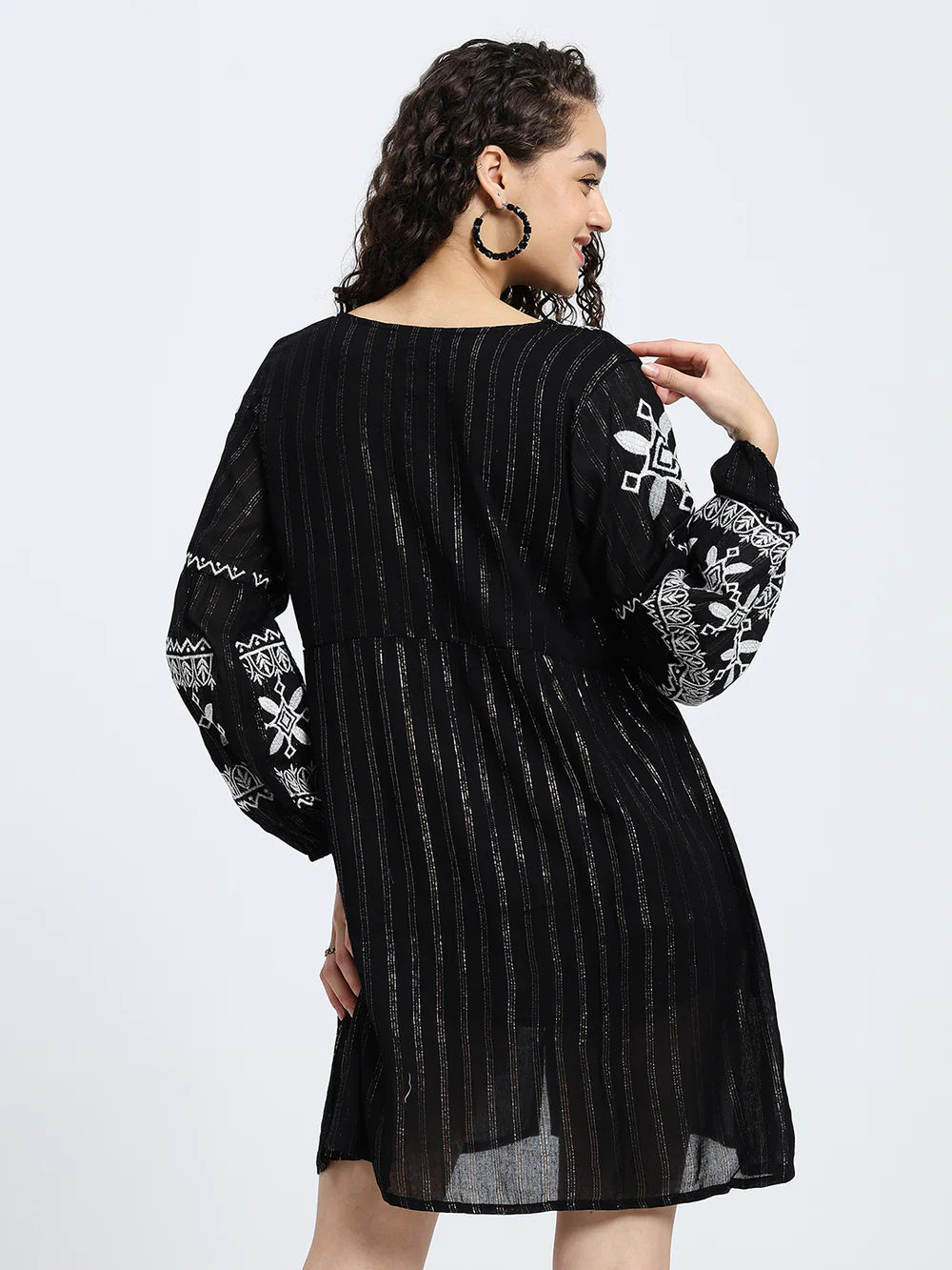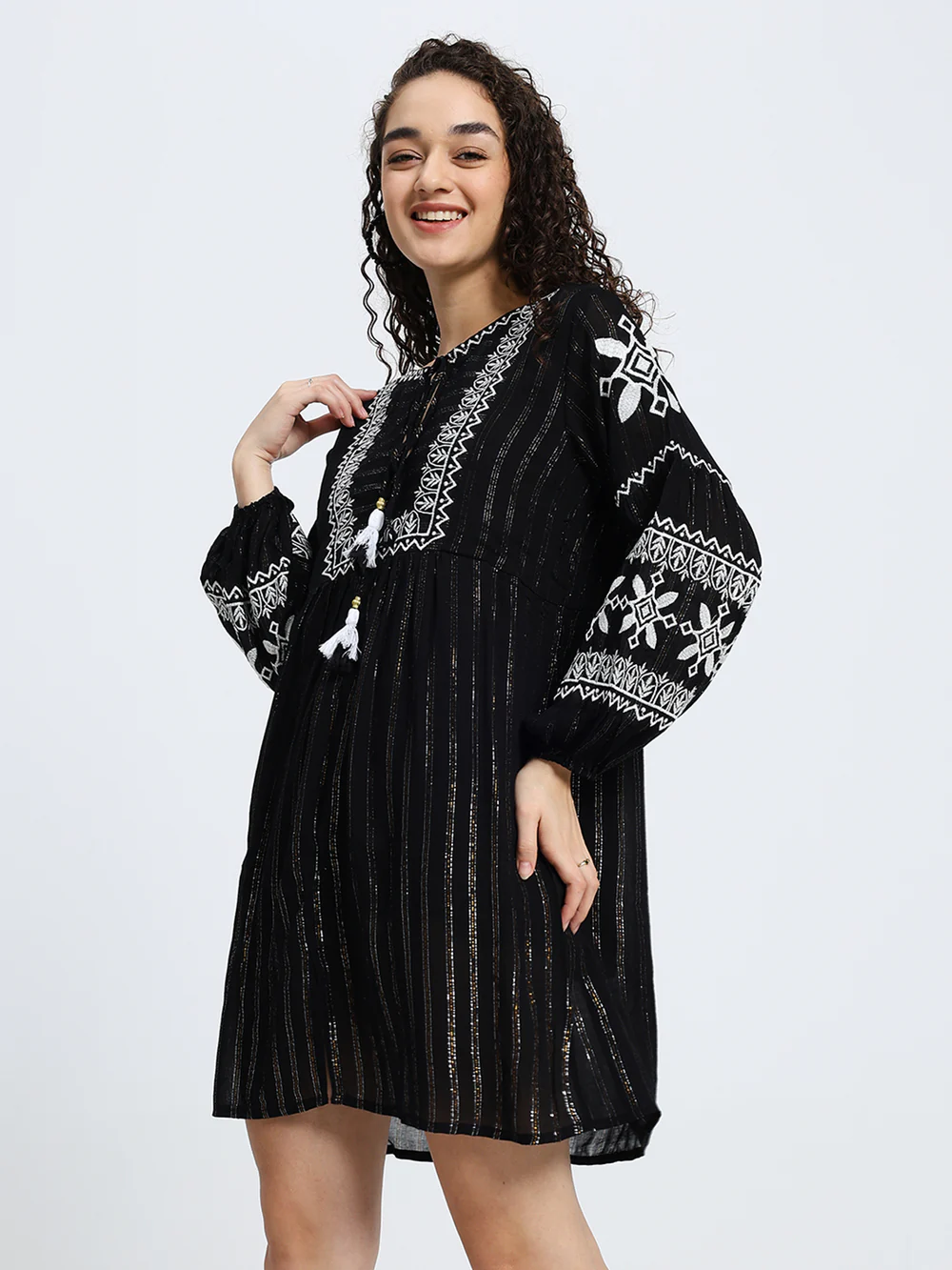 Lurex Embroidered Short Dress in Black