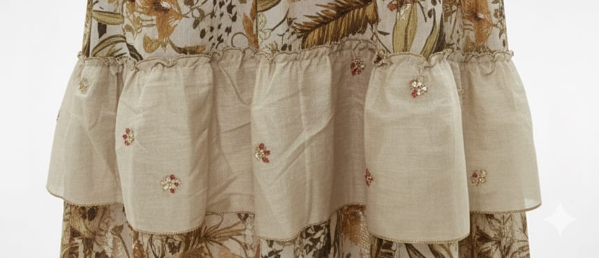 – Iron on low heat if needed, avoid direct heat on any embellishments