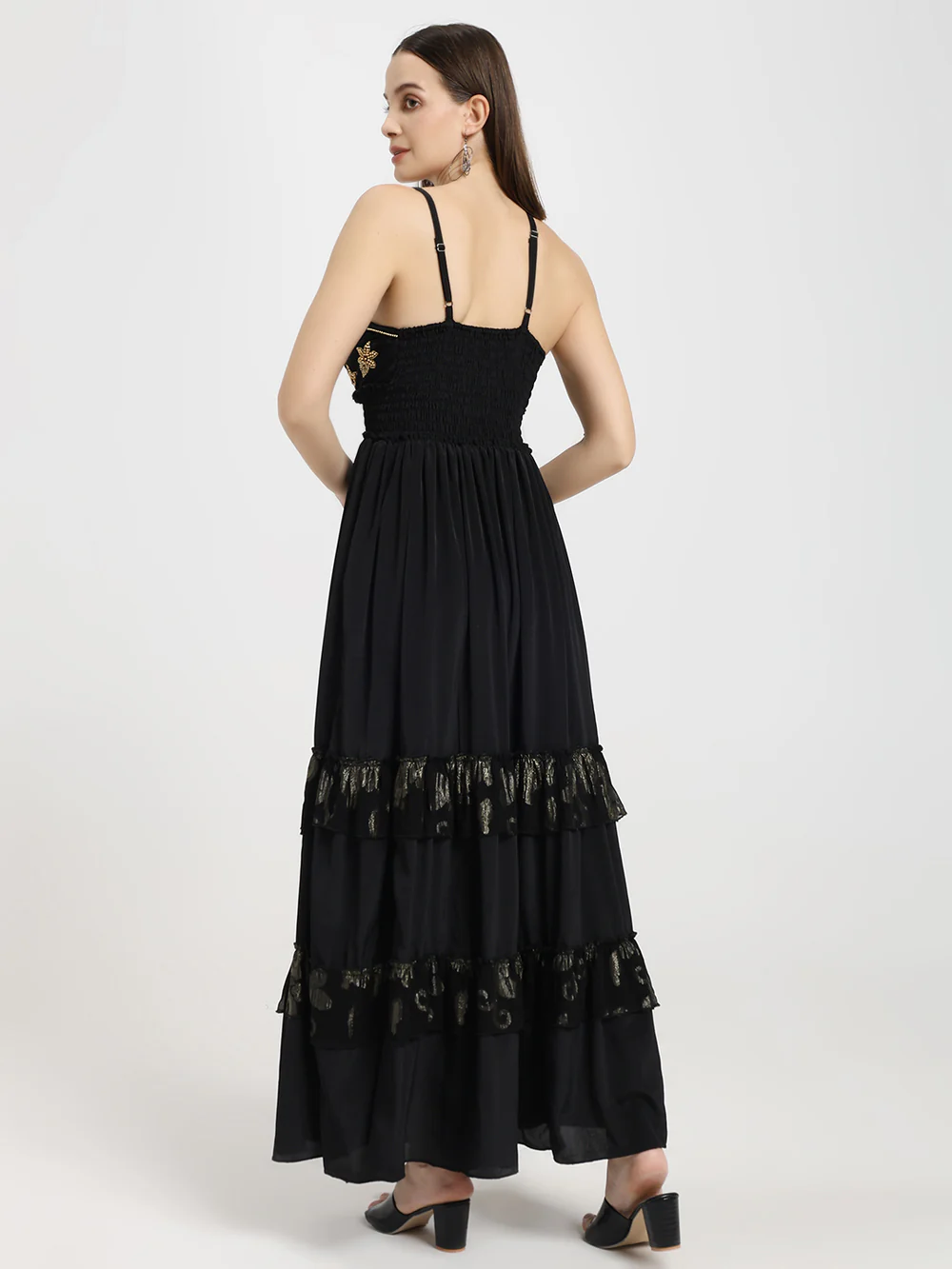 Effortlessly chic drop shoulder dress featuring a relaxed silhouette, romantic tiered hem, and classic full-button placket. Perfect for casual days or dressed up with accessories.