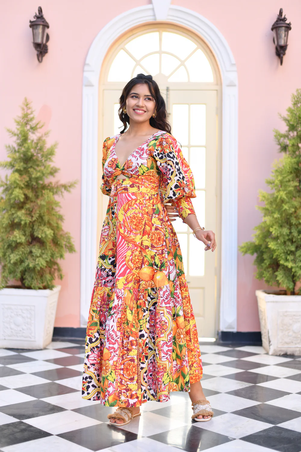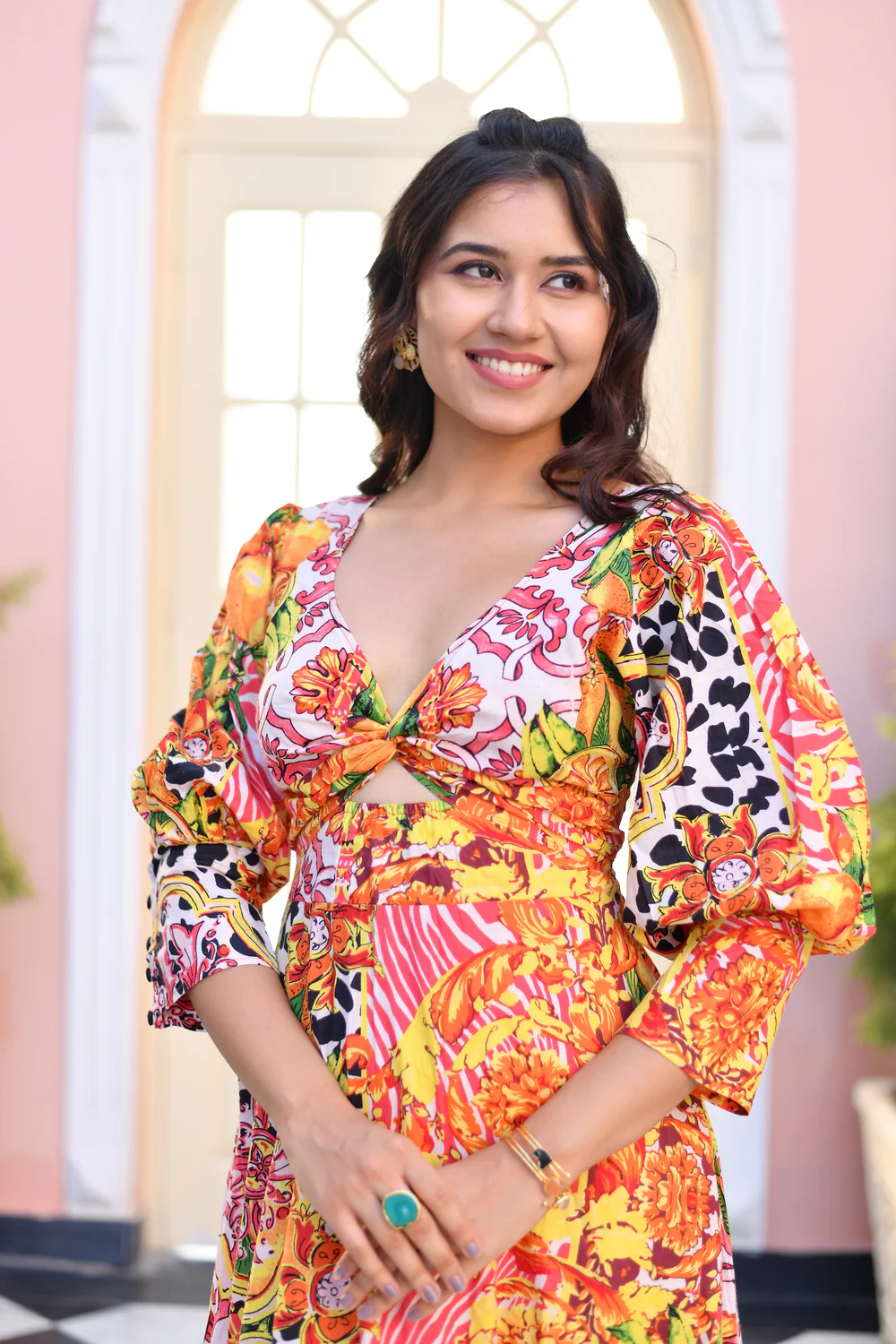 Tangerine Dream Puff Sleeves Cut Out Cotton Dress