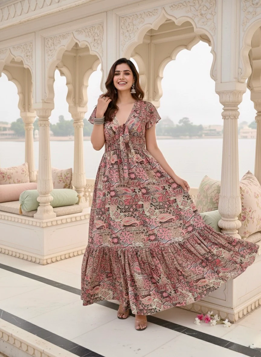 Tied-up Wanderlust Maxi Dress -Blush Bohemian