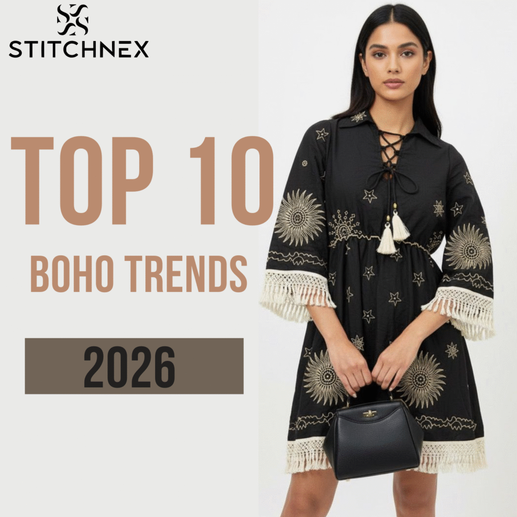 At Stitchnex, we track these trends and provide export-ready designs to help brands launch collections that resonate with international consumers. With custom sampling and flexible MOQs, boutiques can confidently plan their 2026 boho offerings.